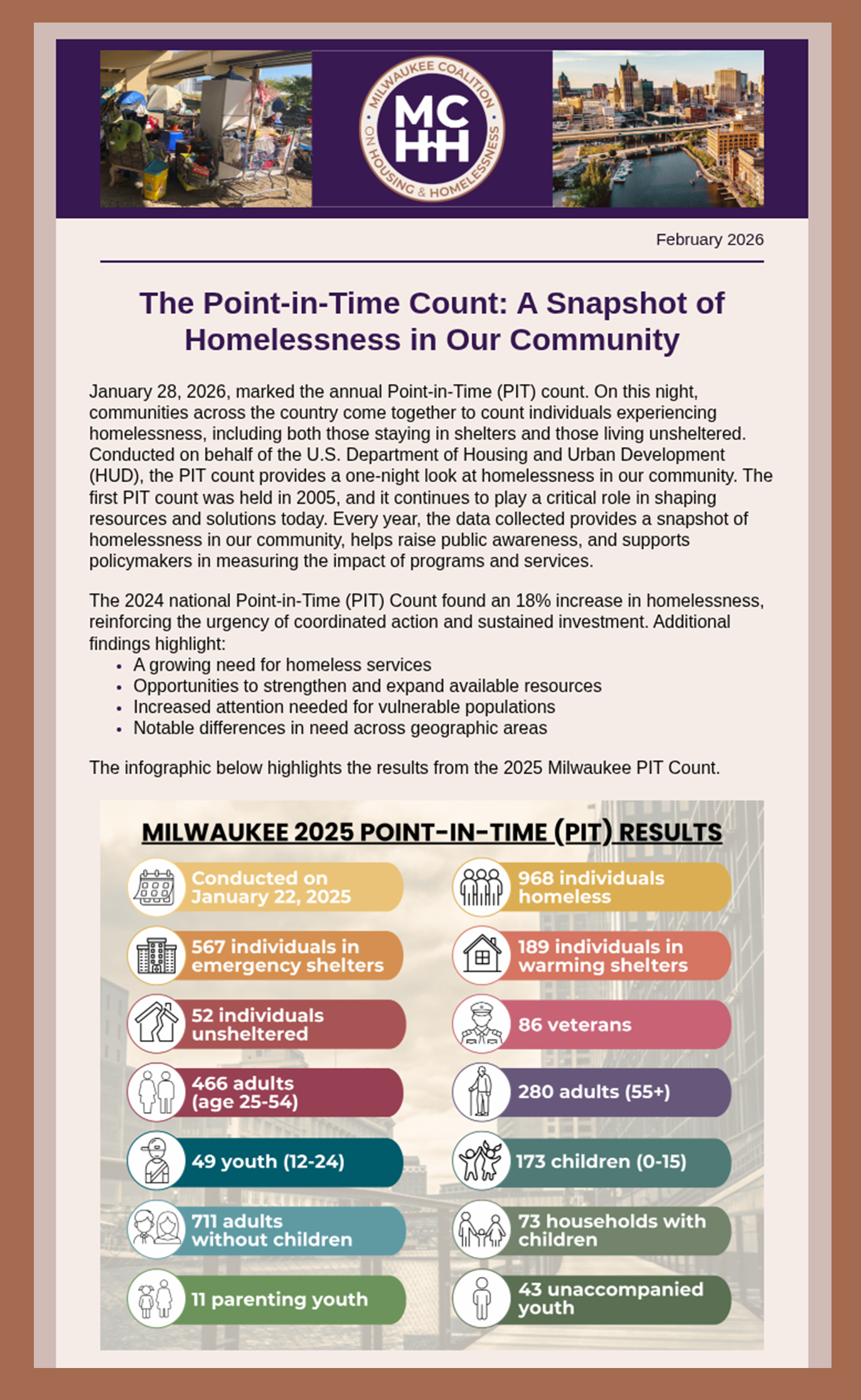 Stay connected to the latest news and updates on homelessness in Milwaukee by subscribing to our newsletter.